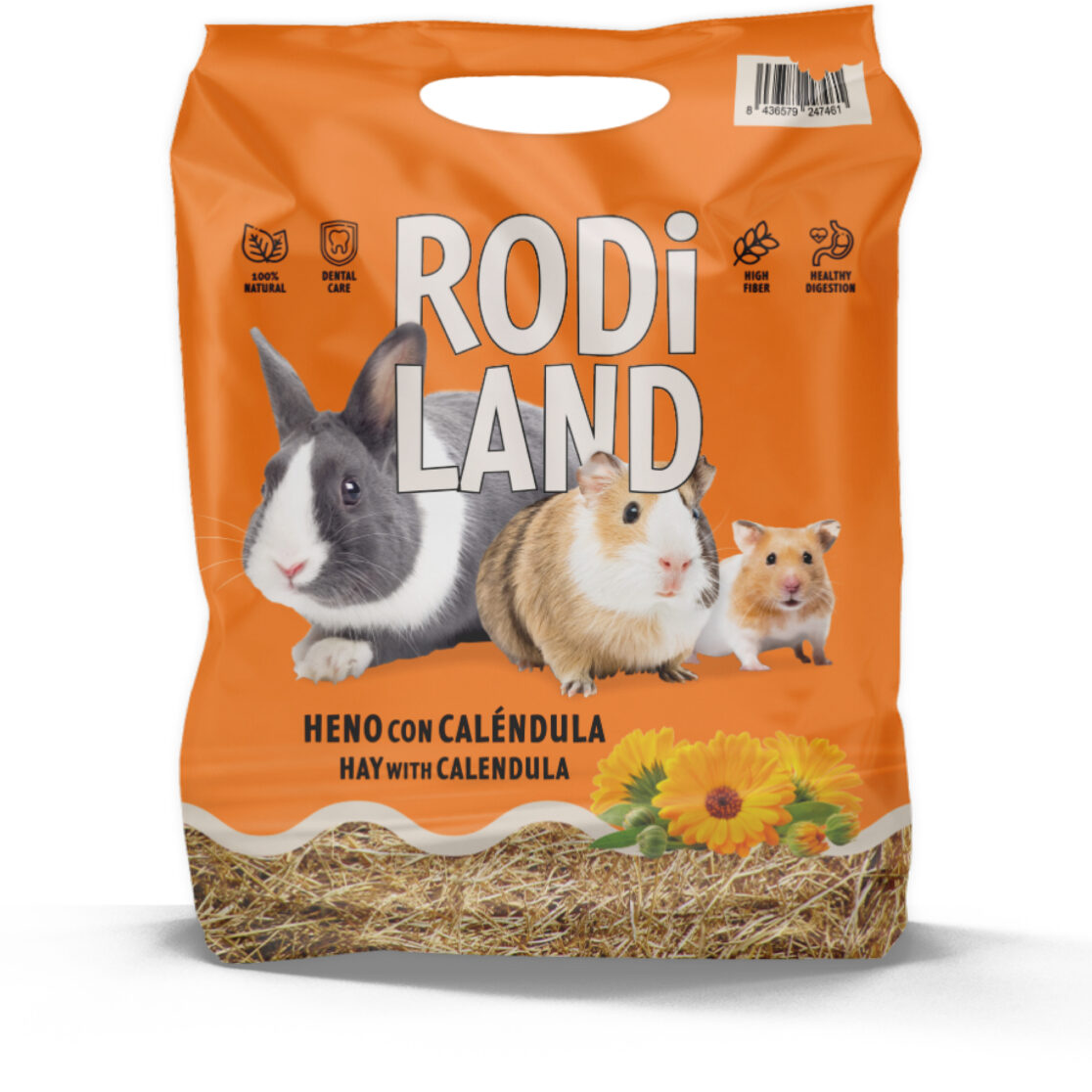 Diseño del packaging de una nueva gama de henos naturales para roedores de Rodiland, una de las marcas propias de Miscota.